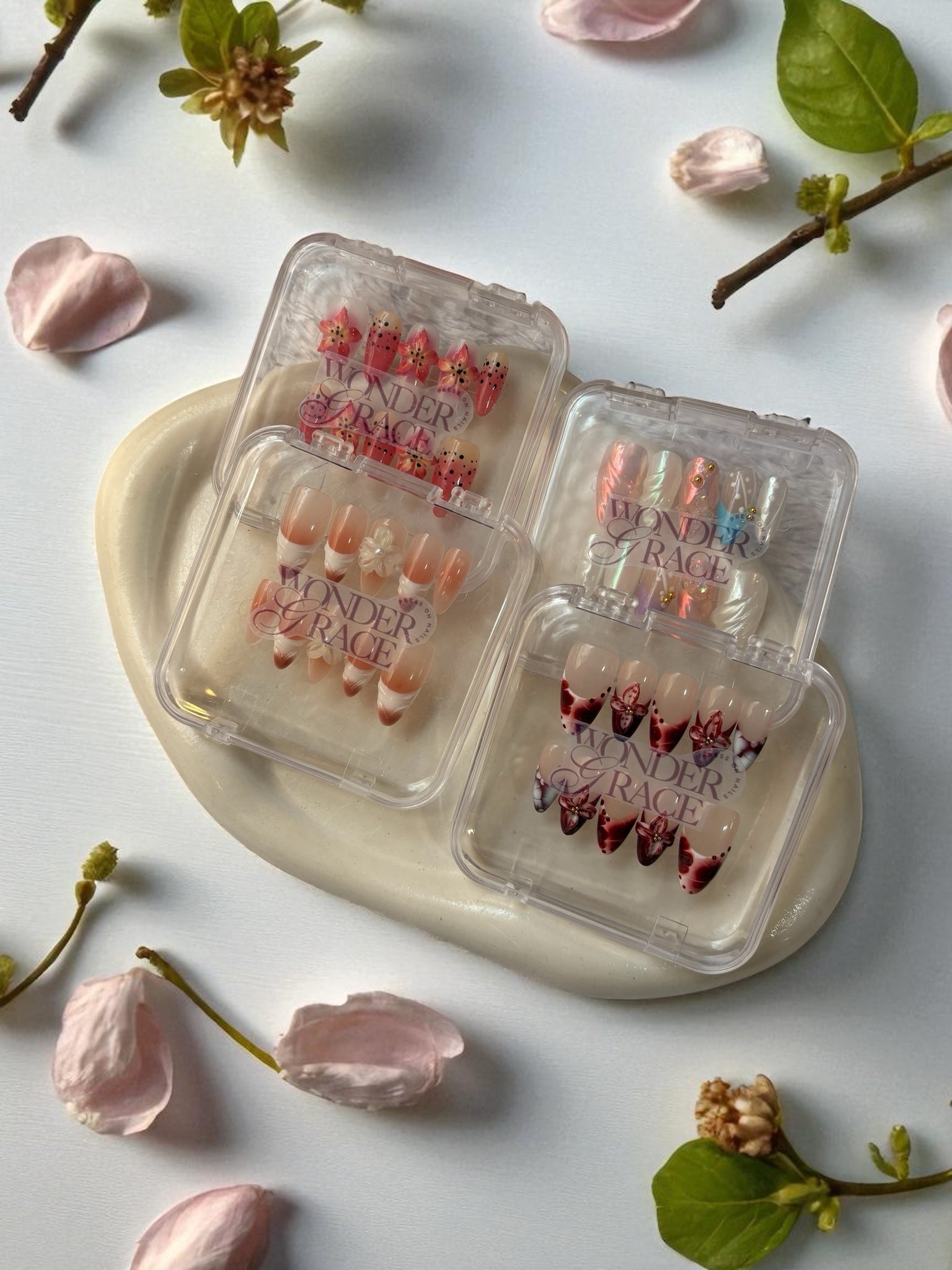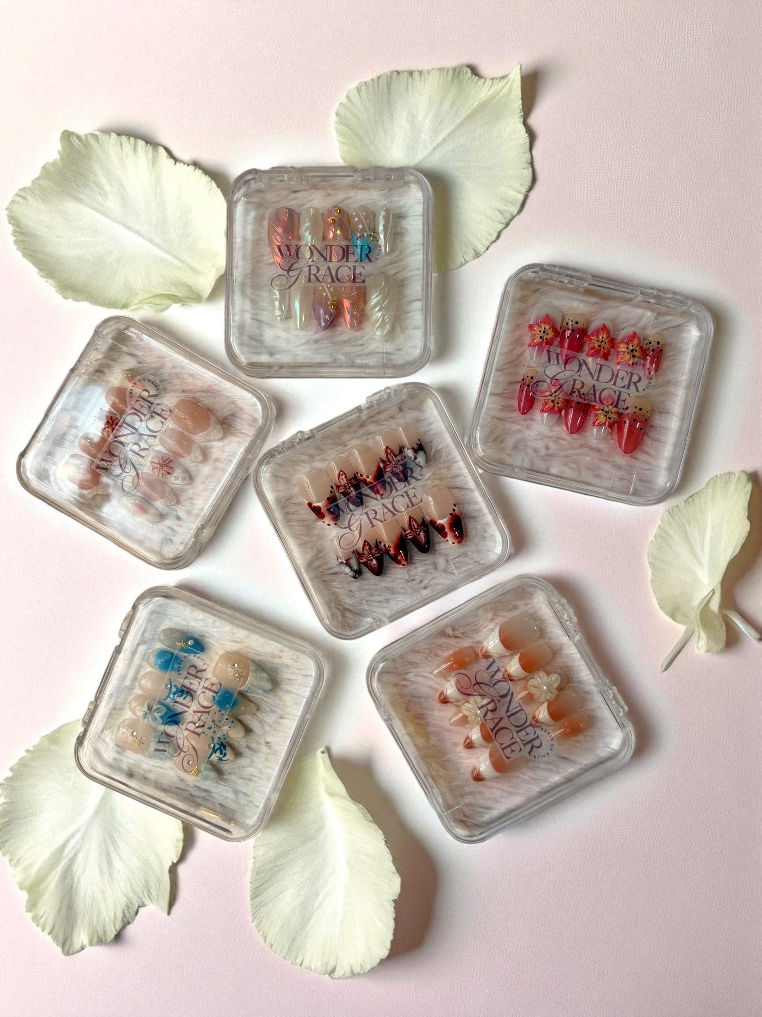 Our mission is to bring salon-quality elegance straight to your hands effortlessly, affordably, and beautifully. Each set of our false nails is designed with love, precision, and creativity to make you feel confident and graceful every single day. Whether you’re preparing for a special occasion or just want to elevate your everyday look, Wonder Grace Nails ensures that professional-level perfection is always within your reach.