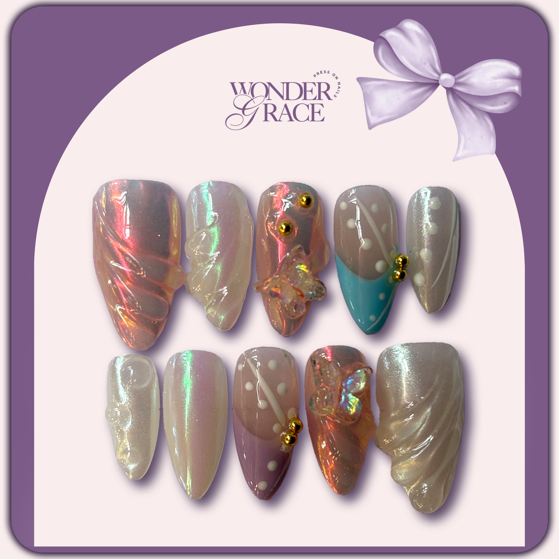 • 10 Handmade Press-On Nails (Almond Shape)